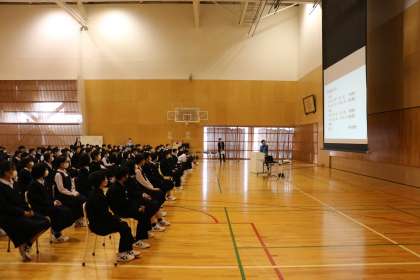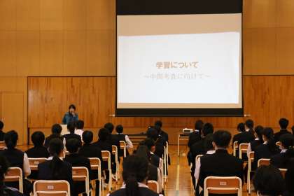 学年集会(1年生) 公開日 2022/05/02 更新日 2022/05/02 芝園の一日 5月2日(月) 本日、1年生は学年集会を行いました。学習のこと、GWのことについての話を真剣に聴いている様子です。 学習にフライングはありません!初めての中間テストにむけてがんばりましょう。