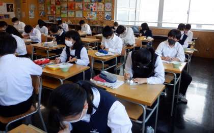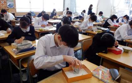 制作もいよいよ大詰め 1 3−D美術 公開日 2022/05/02 更新日 2022/05/02 芝園の一日 5月2日(木) 1限 3−Dの美術の授業風景です。 石彫の制作もいよいよ大詰めです。黙々と制作に励んでいます。