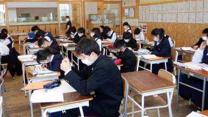 5月6日(金) 1限 1−Cの数学の授業風景です。 「正負の数」について学習をしています。