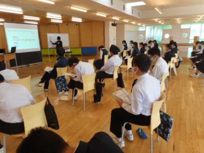「翼ください」の合唱に取り組んでいました。曲想について意見を伝え合うことで、気持ちを込めて歌いました。