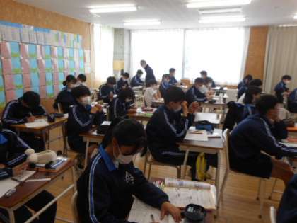 水溶液の性質 3−D理科 公開日 2022/05/11 更新日 2022/05/11 芝園の一日 5月11日(水) 2限 3−Dの理科の授業風景です。演習問題に取り組んでいました。分からない問題は、先生に積極的に質問し、理解を深めていました。