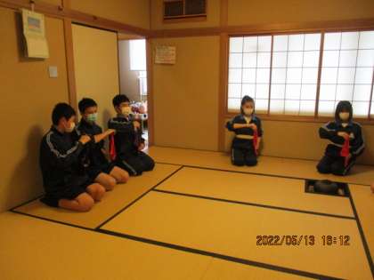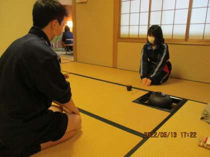 今日の茶道部 公開日 2022/05/13 更新日 2022/05/13 芝園の一日 5月13日(金) 体育大会の練習期間中なので、体育服着用での部活動となりました。基本である「帛紗さばき」をみんなで確認しました。 今日のお花は、「鉄線(てっせん)」です。