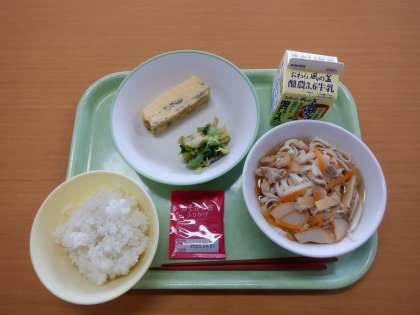 今日の給食 公開日 2022/05/17 更新日 2022/05/17 芝園の一日 5月17日(火) 今日の給食メニューは、 ・ごはん ・牛乳 ・かやくうどん ・おひたし ・えごま入り卵焼き ・しそかつおふりかけ です。 ボリュームたっぷりで食べ応えがあり、美味しかったです。