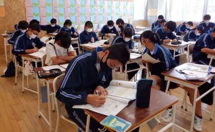 メリハリをつけて 2 3−B英語 公開日 2022/05/18 更新日 2022/05/18 芝園の一日 5月18日(水) 1限 3−Bの英語の授業風景です。 「ファンレターで自分の想いを伝えよう」という課題で学習しています。友達と教え合って、楽しく学習しています。 3年生、ステキです!
