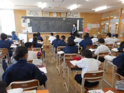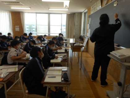 1−Cの数学の授業風景です。体育大会の練習の疲れを見せることなく、元気に学習に取り組んでいました。メリハリをつけて学習に取り組む雰囲気が素敵ですね。
