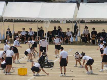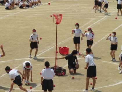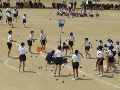 体育大会 その13 公開日 2022/05/19 更新日 2022/05/19 芝園の一日 5月19日(木) プログラム9番は選手による「スローイン!〜令和玉入れ合戦〜」です。高い籠に入ったら3点、下の籠は1点で、多く点数を稼いだ団が勝ちとなります。