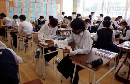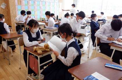 ペアで学習 3−D英語 公開日 2022/05/20 更新日 2022/05/20 芝園の一日 5月20日(金) 5限 3−Dの英語の授業風景です。 単語の確認をペアで行っています。二人で学習すると楽しいね。