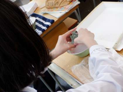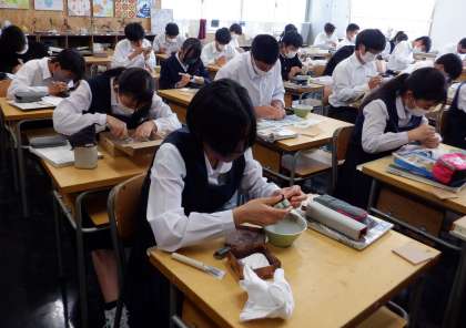 制作に集中 3−A美術 公開日 2022/05/20 更新日 2022/05/20 芝園の一日 5月20日(金) 5限 3−Aの美術の授業風景です。 美術室に入ると、石を削る音、磨く音だけが聞こえます。 全員が集中して制作しています。さすが!3年生。