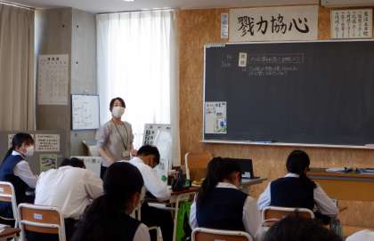 画像は、3−Aの数学の授業風景です。課題について、真剣に考えています。クラスみんなで楽しく頑張ろうという雰囲気がとってもいいです。