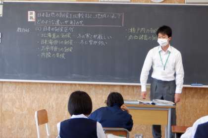 日本海側と太平洋側でずいぶん気候が違うのは、地形的な条件が要因となっていることを、生徒は改めて確認をしていました。