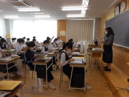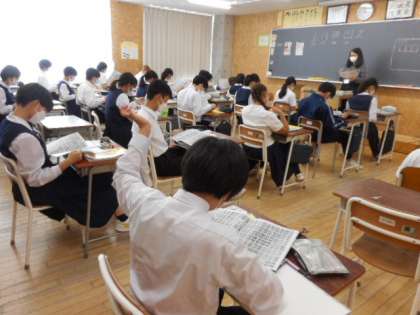 2−Dの美術の授業風景です。明朝体やゴシック体の違い、その他、色々な書体があることを学習しました。普段、教科書や新聞で見る書体は何かな?