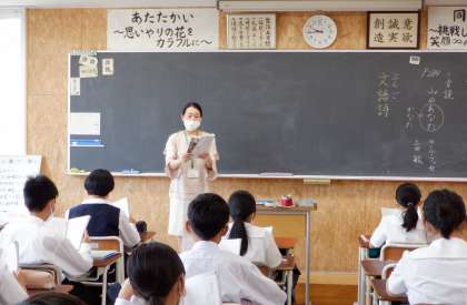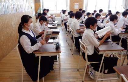 まず、全員で音読の練習をしています。声を出して、テンポよく文章を読むと、集中力がつくと言われています。
