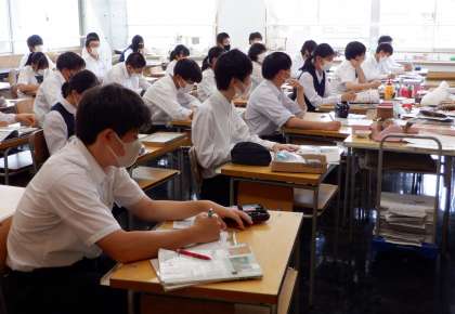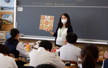 5月26日(木) 5限 3−Bの美術の授業風景です。 今日から「立体感のあるデザイン」の制作に入ります。