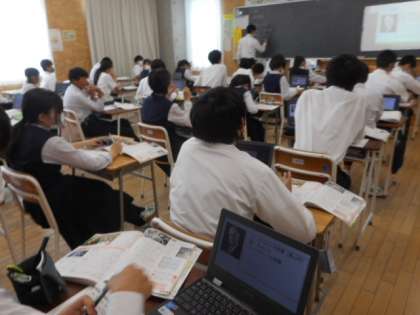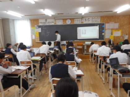 3−Cの社会の授業風景です。クロームブックを活用して資料をもとに学習しています。2日間の中間考査が終わりましたが、疲れを見せずに真剣に授業に臨んでいます。