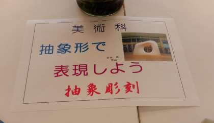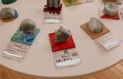 3年生の学年フロアには、石彫の作品が展示してあります。