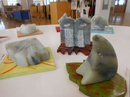 自然をテーマに、イメージしたものを抽象形で表現しています。量感や質感を意識して、根気強く取り組んでいました。