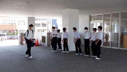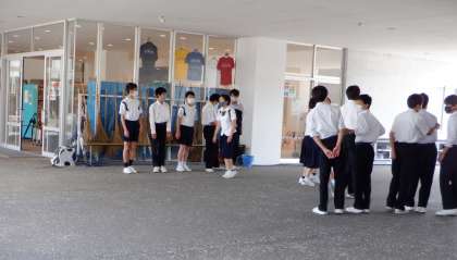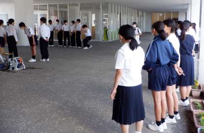 画像は生徒会が行っている「Fresh朝活」の様子です。