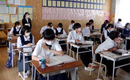 授業の始まりに、単語の練習のために全員でビンゴゲームをしています。先生も生徒もノリノリ!「楽しく学ぶ」大事なことです!