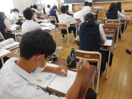 3−Aの理科の授業風景です。身の回りにある様々な電池の仕組みついて学習しました。これまで学習してきた科学的なことが、身近な生活の中で活用されていることを知りました。