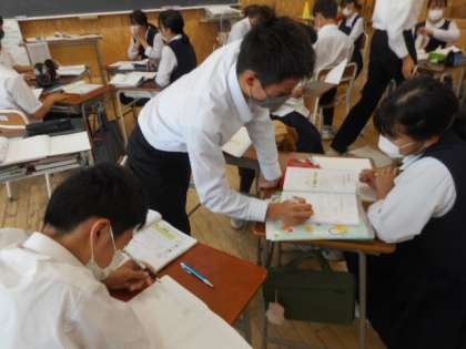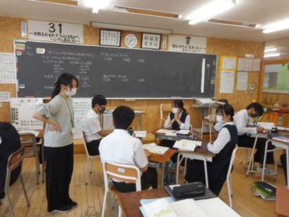 平方根の応用 3−D数学 公開日 2022/06/07 更新日 2022/06/07 芝園の一日 6月7日(火) 5限 3−Dの数学の授業風景です。平方根の応用問題にチャレンジしていました。グループで分からないところを教え合いながら、理解を深めました。