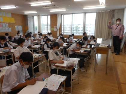 1−Cの技術の授業風景です。身の回りにある、コンピュータで制御されているものについて学習しました。