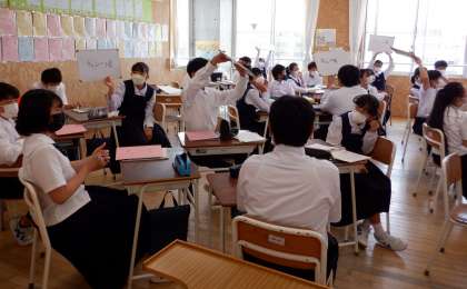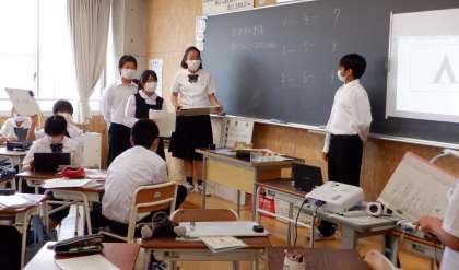 グループで学習 1−B英語 公開日 2022/06/07 更新日 2022/06/07 芝園の一日 6月7日(火) 2限 1−Bの英語の授業風景です。グループ毎に問題を出し合って、楽しく学習をしています。