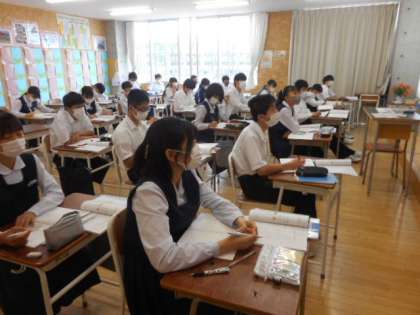 平方根の学習 3−C数学 公開日 2022/06/08 更新日 2022/06/08 芝園の一日 6月8日(水) 2限 3−Cの数学の授業風景です。平方根の計算問題に取り組んでいました。授業に真剣に取り組む姿勢は、さすが3年生ですね。