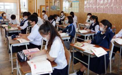 文歩について学習をしています。1年生に学習した内容の振り返りなので、生徒は思い出しながら確認をしていました。
