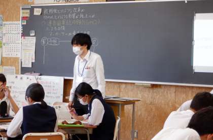 実習生 頑張っています! 3−D社会 公開日 2022/06/09 更新日 2022/06/09 芝園の一日 6月9日(木) 1限 3−Dの社会の授業風景です。「敗戦後の日本」について考えを深めています。今日は、実習生が授業をしました。実習生も頑張っています!