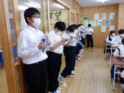 今日は1−Cの生徒が2年生の先輩の授業を参観しました。この活動は「上級生は模範となる姿を後輩に見せる」「1年生は、先輩の姿に学び芝中生としての意識を高めていく」ことを目的とし、本校のよき伝統や校風を継承することをねらいとしています。
