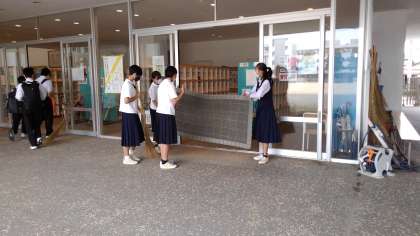さて、今朝もボランティアで生徒玄関を掃除してくれている2年生。おかげさまで、いつも玄関は綺麗で気持ちよく過ごせます。