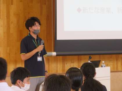 3学年 「富山県成長戦略」 講演会 公開日 2022/06/20 更新日 2022/06/20 芝園の一日 本日の5限に、富山県知事政策局成長戦略室戦略企画課から講師の方をお招きし、富山県成長戦略ビジョン「『幸せ人口1000万人〜ウェルビーイング先進地域、富山〜』を目指して」の講演会を行いました。富山県の現状や、取り組んでいる6つの柱について具体的な内容を理解することができました。今後は、個人テーマを設定し追究活動を進めていきます。