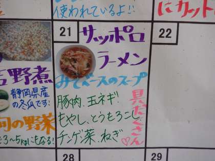 今日の給食メニューは、