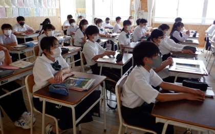 1年生の英語では、授業の始めに単語の確認と練習をしています。英単語は、英語の基礎・基本です。繰り返し練習しましょう!