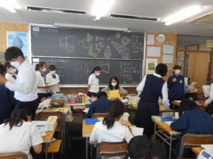 レタリング 2−C美術 公開日 2022/06/22 更新日 2022/06/22 芝園の一日 6月22日(水) 2限 2−Cの美術の授業風景です。レタリングした文字に、背景をつけて表現します。もじにあったデザインを考え、色を塗りました。