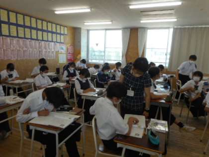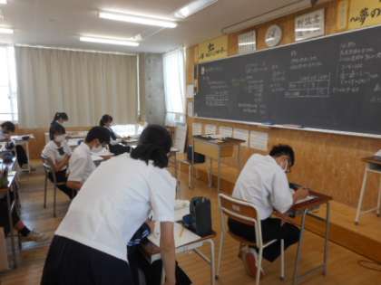 学び合って理解を深めよう 2−A数学 公開日 2022/06/22 更新日 2022/06/22 芝園の一日 6月22日(水) 2限 2−Aの数学の授業風景です。演習問題に取り組んでいます。分からないところは、先生や友達に質問して理解を深めました。