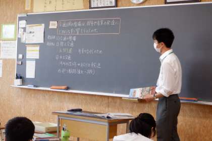 「江戸時代の交通網の発達と庶民の生活」について学習をしています。生徒は、教科書や資料集の様々な情報を基に、考えを深めています。