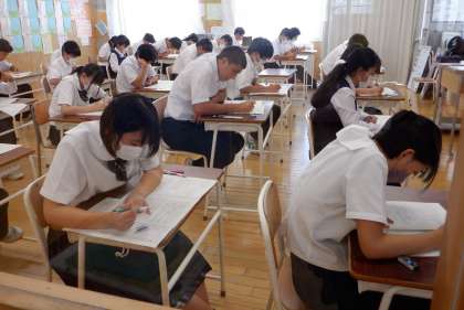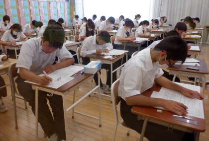 3年生のテストの様子です。教室の空気が「ぴしっ」と張り詰めています。よい緊張感で、テストに臨んでいる3年生。さすがです!