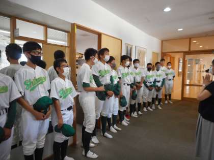 野球部 市民体育大会へ 公開日 2022/07/01 更新日 2022/07/01 芝園の一日 大会に向けて部員みんなで挨拶をして出発しました。明るく、試合への意欲があふれていました。芝園中野球部らしい、さわやかでチーム力のある野球ができることを願っています。