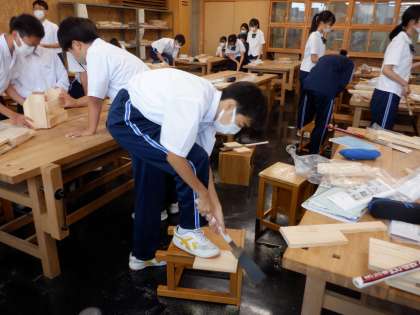7月4日(月) 1限 2−Aの技術の授業風景です。ものづくりは、楽しそうですね!