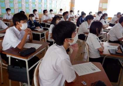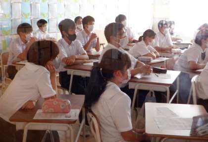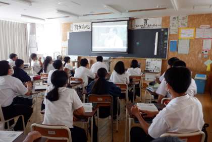修学旅行に向けて 3年 公開日 2022/07/06 更新日 2022/07/06 芝園の一日 7月6日(水) 5限 3年生は9月に実施予定の「広島・関西方面の修学旅行」に向けて、事前学習を行っています。 その平和学習の一環として、今日はビデオを視聴しました。8日には、広島の原爆の語り部さんをお招きして講演会を行います。平和の大切さを、感じて欲しいと思います。