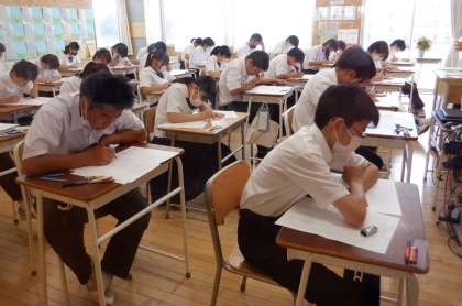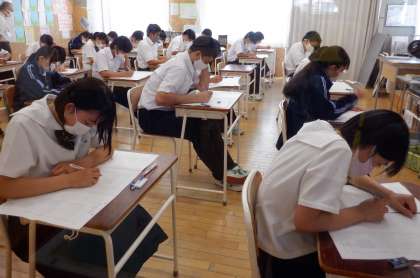 校内学力調査その1 3年 公開日 2022/07/07 更新日 2022/07/07 芝園の一日 7月7日(木) 1限 3年生は、昨日から校内学力調査を実施いています。 夏休み前に今の自分の力を確認して、苦手な分野の克服をすることをねらいとしています。今からが勝負です!