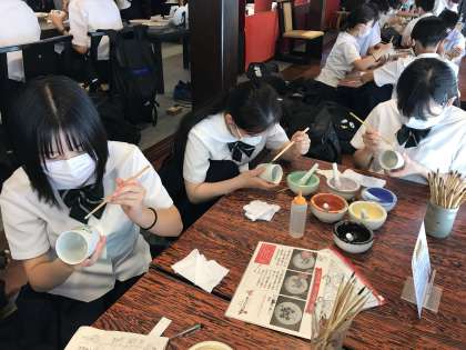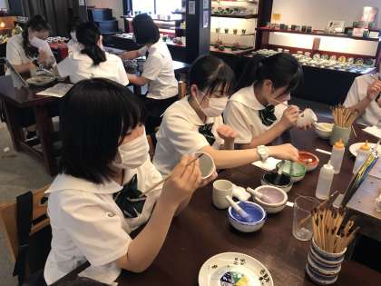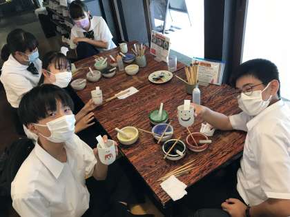 7月8日(金) 九谷焼の絵付体験をしています。かわいい湯呑みになりそうです。