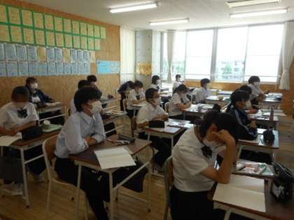 2−Bの理科の授業風景です。細胞の働きについて学習しました。細胞の作りを学習することで、私たちの体に起こる現象についても知ることができました。