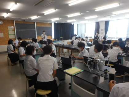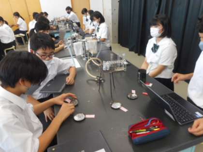 1−Aの理科の授業風景です。理科では、燃焼による物質の状態変化から、何を燃やしたかを考えました。