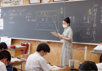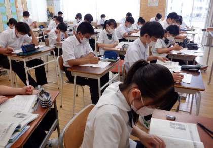 比較して読む 3−D国語 公開日 2022/07/15 更新日 2022/07/15 芝園の一日 7月15日(金) 1限 3−Dの国語の授業風景です。2つの報道文を比較して、読み深めています。集中している姿は、さすが3年生です。
