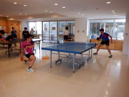 画像は、県選手権大会に向けて練習に励んでいる卓球部です。