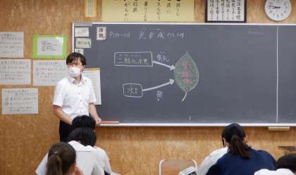2−Dの理科の授業風景です。「光合成のはたらき」について学習をしています。「植物の営みによって、私たちは酸素を得ることができる。」学習を通して、改めて感じ取っていたようです。