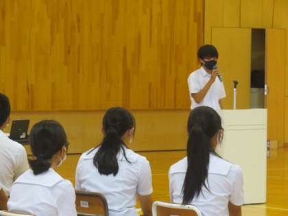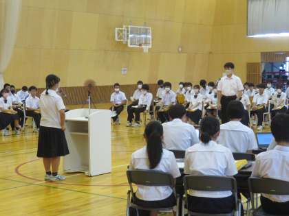 先週学年総会を行い、皆でスローガンや約束事等を確認しました。
