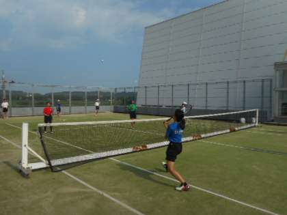 男女ソフトテニス部の活動の様子です。男女とも基礎的な技術を大切に練習をしました。男女とも、爽やかな挨拶がコートに響いていました。